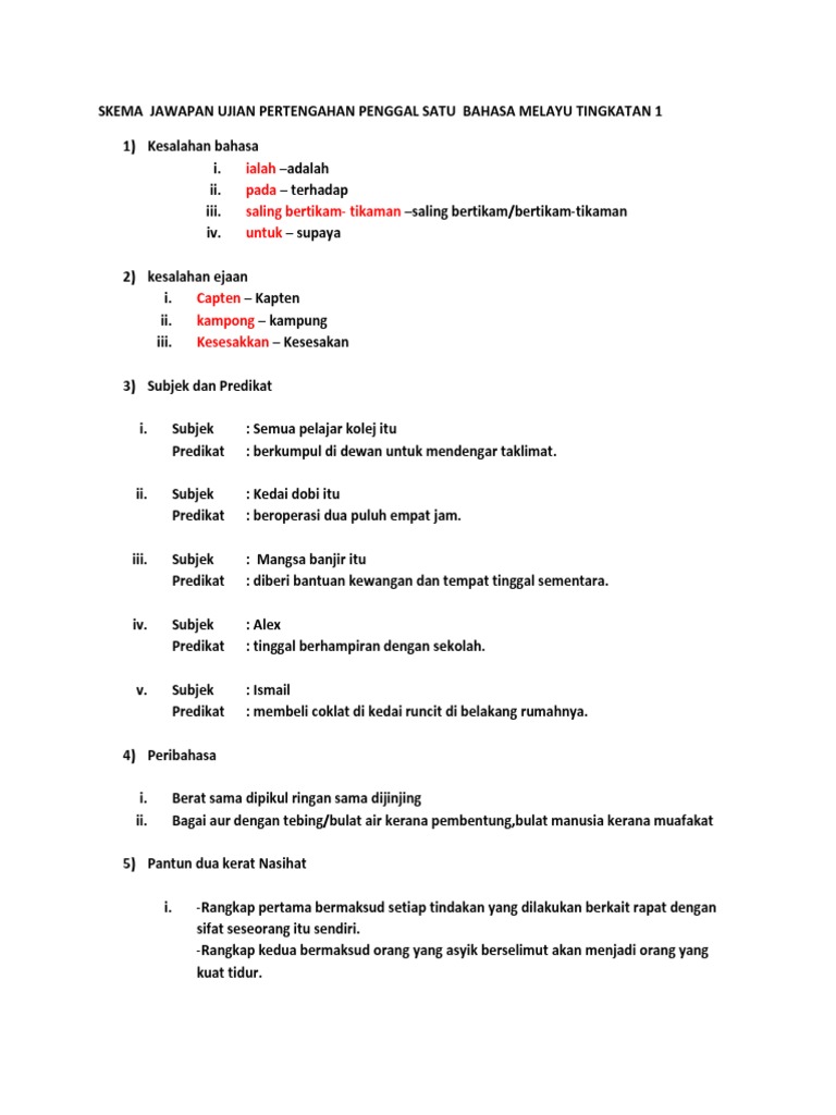 Skema Jawapan Ujian Pertengahan Penggal Satu Bahasa Melayu Tingkatan 1 Pdf